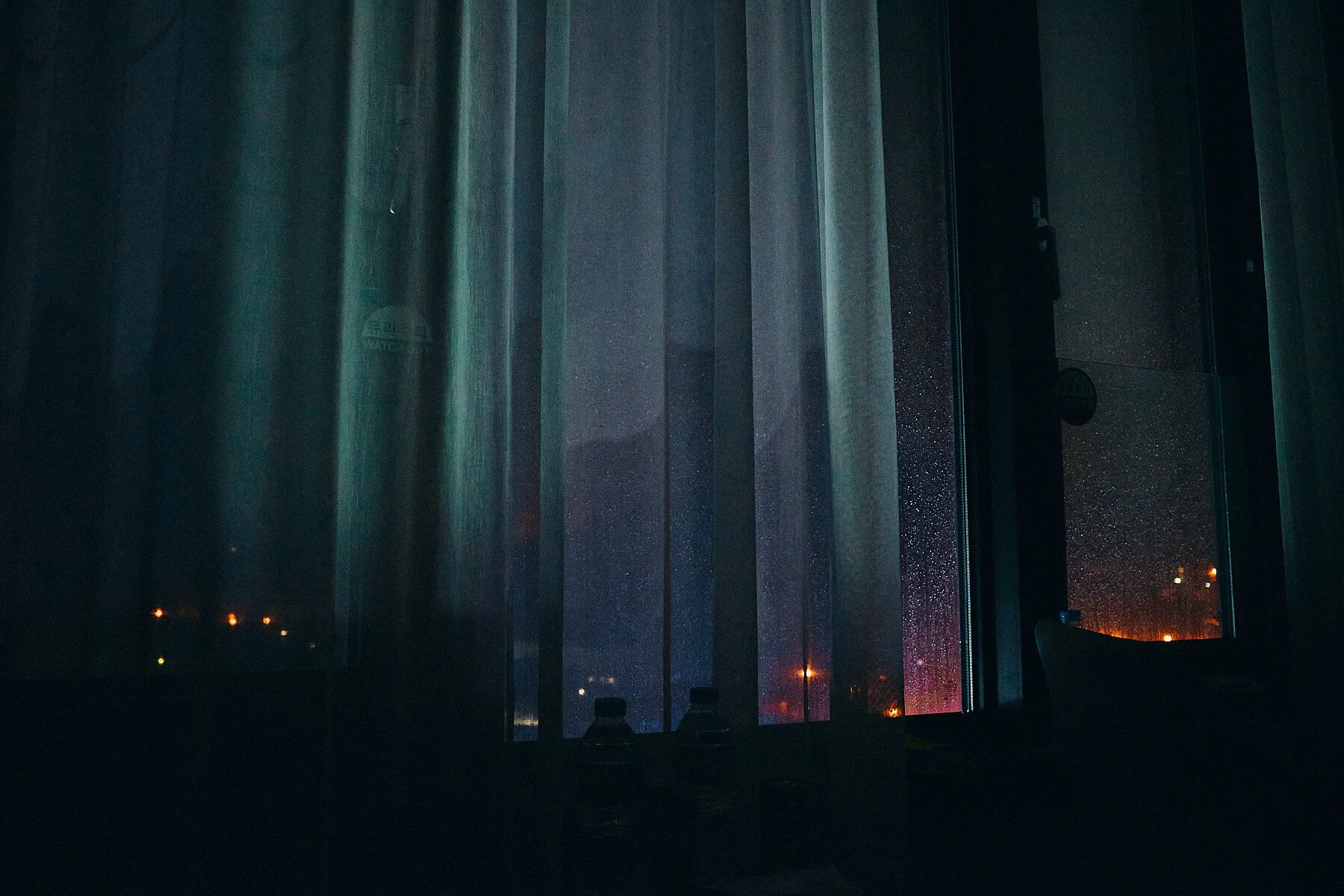 Open your eyes, and the quarantine room takes new shapes, revealed by the artificial light out there. Might as well follow the ghosts, freeze them on the sensor to prove that, while you sleep, the world keeps being. Tonight, you’re just catching it in the act, as you wait for dawn to come.
